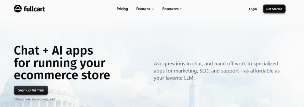 Fullcart describes its ecosystem as “Chat + AI apps for running your ecommerce store.”